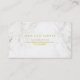Este cartão de visita do na moda caracteriza um fundo de mármore branco do olhar com um design geométrico do ouro do falso. Personalize com sua informação na parte dianteira e na parte traseira.