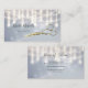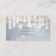 Um elegante cartão de visita de cabeleireiro prateado embelezado com iluminação pendurada no estilo de candelabro e luzes cintilantes de cordas tinham um par de tesouras para cortar cabelo. Personalize adicionando seu nome, credenciais, assim como seu salão de cabelo.