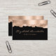 Este elegante cartão de visita moderno apresenta um gráfico na moda de borda superior de folha falsa de ouro rosa. Personalize-o com o seu nome no script de escrita manual em cor-de-rosa rosa e informações comerciais em fontes sans serif em um fundo preto O design é repetido no sentido inverso, com espaço para as suas informações de contato.