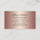 Esta cartão de visita profissional moderna é perfeita para maquiadores e designers de interiores, assim como para outras profissões onde você quer um toque de brilho e brilho. O design apresenta um design de brilho rosa ouro na frente com seu nome e profissão em um roteiro preto em rosa dourado falso para personalizar. A parte traseira da placa é rosa dourada com os detalhes de contato para personalizar. Desenhada pela artista Susan Coffey.
