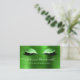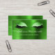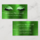 This elegant modern business card features a pair of long-lashed eyes adorned with faux glitter green eye shadow and lined with sparkling diamonds on a background image of green faux brushed metal foil. Personalize it with your name in white handwriting-style script, with room for additional details and contact information on the reverse.