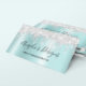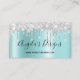 Design moderna de vidro feminino para sua pequena empresa com uma loja online. A reluz da cinza prateada, pouco clara, pálida pega pinga contra uma imagem gráfica de arte digital turquesa ombre clara. Você pode personalizar a caligrafia elegante moderna ou a cor, tamanho e estilo da fonte de todos os bonés. Cartão de visita para vendedores em linha de artes e artesanatos ou outros bens caseiros. Todos os elementos brilhantes e brilhantes neste design de promoção de pequenas empresas modernas são gráficos digitais.