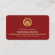 An all dark red cover features a gold line near the base of the card. It houses your prestigious name, the business name and a slogan tagline caption option. At the top is a faux gold global logo you can use.