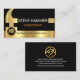 A creative negative space design of a gold hammer. Its handle is made from your prestigious name with the job title "HANYMAN" just underneath. At the base of the card is a gold home landscape logo you can use alongside a slogan caption option.
