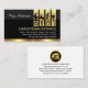 A dark grey and black layered cover is encapsulated by a gold layer near the base of the card. At the top you have four gold tabs that have handyman handyman tools inside ; The tools can represent some of the services you offer e.g. the hammer-sprocket can represent home repairs, the faucet-spanner for plumbing etc. Their usage is left to your own interpretation. Just below the tools tab is the business name "HANDYMAN SERVICE" which you can change alongside your contact details.