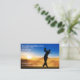 Scenic golf theme business cards created with a beautiful sunset silhouette golf player swinging a golf club in the background of this custom editable layout.