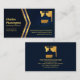 Cartão De Visita Gotas de Água Azul Setas Douradas