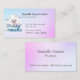 Um design de cartão de visita, encantador e lúdico, para os marinheiros de estimação, com um filhote branco fofo e fofo a gozar de um banho de espuma. O fundo de gradiente pastel macio em pinks e blues adiciona um toque gentil e acolhedor, enquanto a ilustração feita à mão e as fontes brincalhonas lhe dão uma sensação pessoal e butique. Ideal para criadores de cães, salões de animais de estimação ou profissionais móveis de cuidados de animais de estimação que procuram criar uma primeira impressão amigável e memorável.