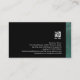 Este notável cartão de visita profissional do gerente de talentos apresenta um elegante gradiente de gradiente de gradiente de inclinação de abstrato turquesa na borda inferior. Seu nome e título aparecem logo acima dessa borda padronizada, sobre um fundo preto a jato. O mesmo tema padronizado aparece na parte de trás do cartão, exceto que a faixa está na borda direita. O logotipo da sua empresa e os detalhes de contato aparecem na seção preta da placa. Esta cartão de visita dá uma impressionante primeira impressão e é perfeita para temas de alto impacto, publicação, impressão, literatura, artes literárias, escrevendo, habilidades artísticas, abstratos profissionais.