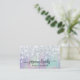 Elevem sua marca com este cartão de visita de na moda que mostra brilho prateado imerso e um gradiente pastel em tons roxos e lacrimogêneos. Projetada para profissionais de beleza como cabeleireiros, maquiadores e técnicos de unhas, esta carta irradia elegância e criatividade. Faça uma impressão duradoura com esta design única e chique que destaca seu profissionalismo.