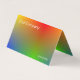Design de Cartão de visita dobrado com gradientes retrorreflectores de cor azul e verde e uma cor-de-fita cor laranja neon Com uma reviravolta psicodélica, você terá seus clientes tropeçando em um tempo antes que pixels e telas dominem o mundo. Design exclusivo de Alma Wad.