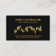 Um cobrir preto apresenta um gráfico de tendência ascendente do mercado de ações em ouro design. Seu nome prestigioso e o título do trabalho estão no topo, junto com os detalhes de contato perto da base do cartão. No verso, o logotipo dourado "gráfico de compartilhamento" (ou silhueta da cidade) que você pode usar está no topo. Isso é seguido pelo nome da empresa, seus detalhes de contato e uma opção de slogan para divulgar sua empresa. Todas as letras estão em ouro falso. Um design luxuoso para investimentos e temas financeiros. #financial #serviços financeiros #consultor financeiro #consultor financeiro #gestor de fundos #stock #corretor #bolsa #estoque #estoque #estoque #forex #zazzlemade