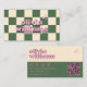 Um cartão de visita de verificação de preto-e-branco retro-boho. Como podem ver, ele apresenta um boho abstrato quadrado feito à mão com uma fonte ranhosa. Com cor rosa, creme e verde. Ele tem anos setenta nostálgicos e vibrações e cores e fontes entaladas na década de 60. Com nome e profissão personalizáveis e código QR desenhado à mão e mídia social. Que você pode alterar clicando no botão personalizar. Agarre-o e faça-o negócio único e atrativo.