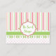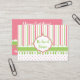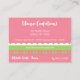 Um cartão de visita com um design original do Mango Moon Studio. Traga um pedaço de doce para seu compro doce, padaria ou sorvete. Este cartão personalizável é uma mistura deliciosa de listras coloridas com sherbet, um charmoso sotaque de fita, e bolinhas lúdicas - a receita perfeita para um cartão de visita que espelha perfeitamente a alegria e a delícia que seu estabelecimento tem a oferecer. Insira o nome do seu compro, um slogan e informações de contato.