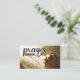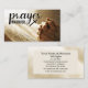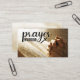 Cartão de visita com cruz cristã e citação inspiradora retrata uma fotografia de mãos rezando em uma Bíblia aberta. Ele apresenta a legenda, "GUERRA DE PRAYER".