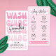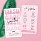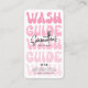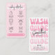 Certifique-se de que seus clientes saibam como cuidar do seu vestuário com este moderno cartão de cuidados de instruções de lavagem. Este guia de lavagem de roupa cor-de-rosa inclui fontes de nostalgia de tendência, espaço para os detalhes da sua empresa e ícones de lavanderia (edite usando a ferramenta design para descobrir mais ícones). Adicione este cartão profissional de assistência a roupas às suas ordens e termine a embalagem da sua roupa.