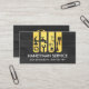 Todos os cobrir de madeira preta apresentam abas de ouro que têm um design de ferramentas de construção de mão-cheia. As ferramentas têm uma camada de madeira subjacente para complementar a superfície da placa. Ele pode representar alguns dos serviços que você oferece, por exemplo, o martelo-foguete pode representar a remodelação doméstica, a torneira para canalização, a bifurcação para paisagens e o raspador de pincel para pintura. O uso deles é deixado para sua própria interpretação. Logo abaixo deste motivo está o nome comercial "HANDYMAN SERVICE", que você pode mudar ao lado dos detalhes de contato. No verso, no topo está um logotipo de martelo dourado que você pode usar. Seguem-se o seu nome prestigiado, os contatos e uma opção de slogan para divulgar seus serviços. Um design de excelente para o pessoal doméstico, reparo de casas e empresas de construção. #handyman #constuctionhandyman #homerepaircontratante #construtor #carpenter #construtor #remodelador #ferramentas manuais #construtor #homerepair #interiordesign #generalcontratante #zazzlemade