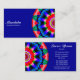 Um cartão de visita com um atraente motif de mandala caleidoscópico. Nome da empresa, etc., na frente, com outras indicações no verso, com uma variação no mesmo motivo.