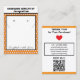 Handmade Jewelry by Name typography in black against white background. Orange background with terra cotta and white polka dots. Crafted with love written in black script (keep or insert short tagline, or delete to leave area blank). Two Small Circles against white and black framed background. NOTE: Circles and Lines on each side are not pre-cut, you will need to use a Small hole punch, and scissors or box knife cutter type to make clean cut holes and Small slits, to then place your Earring Studs and Necklace in. Backside has small red heart. Insert telephone number, email address, website, social media handle, as needed. Insert Your Business QR Code for customers to Shop 24/7, or delete as needed. Original Design by TamiraZDesigns.