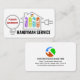 A set of handyman tools icon is inside a home made from an electrical wiring circuit. The light bulb houses your prestigious name with the business name "HANDYMAN SERVICE" at the base of the card.