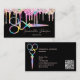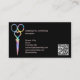 Um cartão de visita Holográfico de cabelos holográficos, moderno neon Unicorn, de luxo, com tesoura holográfica e tipografia moderna de luxo, ideal para cabeleireiro, salão de cabelo, extensões de cabelo, perucas.... Os detalhes da folha são simulados no trabalho de arte. Este produto não contém detalhes em papel laminado. Adicionar seu código QR