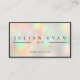 Elegante cartão de visita holográfico de fundo escassamente falsa para proprietários de pequenas empresas e grandes organizações. A design apresenta uma tipografia moderna e minimalista com um fundo simples mas eficaz. Perfeito para um belicista ou dono de um salão de beleza, maquiador, fabricante de fantasias, cabeleireiro ou cosmetólogo. NOTA: Os detalhes holográficos são simulados no trabalho de arte. Não haverá efeitos holográficos reais no brilho quando impresso.