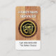 Uma camada de madeira apresenta um cartaz de madeira redondo perto do centro que contém o logotipo dourado "ferramentas manuais caseiras" que você pode usar. No topo está o nome comercial "HANDYMAN SERVICES", que você pode mudar com os detalhes de contato na base, dentro a camada branca. No verso, num cobrir branco, o logótipo dourado está no topo. Seguem-se o seu nome prestigiado e os contatos. Um cartão de excelente para um homem de mão, carpinteiros, empreiteiros de construção a serem usados.