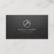Esta simples e elegante casa de reparo de profissionais qualificados cartão de visita apresenta seu nome e título em letras minúsculas simples no centro da placa e um ícone de prata em negrito de uma tomada elétrica logo acima. O fundo é uma textura escura e esfregada de metal. Perfeito para reparo domiciliar, sujeira, comércio qualificado, reparador, construção, temas relacionados a edifícios.