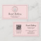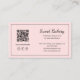 Cartão de visita rosa com logotipo de padaria moderna e ícones de mídia social com QR. Eleve a marca da sua padaria caseira com este cartão de visita elegante e funcional. Com um fundo rosa suave, ele permite que você mostre o logotipo da sua padaria, adicione um código QR para fácil acesso ao seu site ou cardápio e personalize ícones de mídia social para combinar com suas plataformas. Perfeito para proprietários de pequenas padarias, padeiros caseiros e chefs de confeitaria que buscam deixar uma impressão duradoura. Personalize com seus detalhes para criar um visual único e profissional.