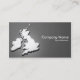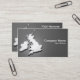 Um cartão de visita com um mapa tridimensional das Ilhas Britânicas. Detalhes da empresa na frente com o nome e os detalhes de contato no verso em um estilo correspondente.