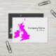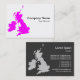 Um cartão de visita com um mapa das Ilhas Britânicas. Detalhes da empresa na frente com nome e detalhes de contato no verso em um estilo tom em contraste com a frente.