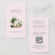 Cartão De Visita Ilustração de Aquarela Moderna Blush Código QR Spa