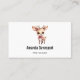 Cartões de visitas com uma ilustração de um adorável veado bebê. Olhos grandes orelhas com cabeça grande e pequenos galhos castanhos. Vestindo um grande arco vermelho.