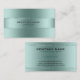 Imagem de um fundo azul-esverdeado claro metálico, realçada com faixas brilhantes como elemento design. Design de cartão de visita simples e elegante de dois lados com texto personalizável.