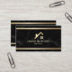 Logotipo Dourado moderno de Casa Imobiliária Imobiliário Imobiliário Cartões de visitas de Mármore Preto.