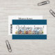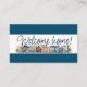 Este cartão de visita atraente foi projetado para causar uma primeira impressão memorável para profissionais de imóveis que desejam que sua marca seja sentida como calorosa, acolhedora e acessível. A frente apresenta um fundo azul sofisticado que chama a atenção instantaneamente e transmite otimismo e confiança. Atravessando o centro, há uma faixa horizontal que apresenta uma ilustração em aquarela de uma vizinhança colorida de casas, simbolizando comunidade, possibilidade e novos começos.