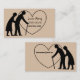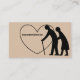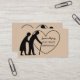 Este é um cartão de visita de cuidador privado de cor castanha clara, com uma silhueta de casal idosa. O seu nome, título e número de telefone são dentro grande coração de um lado e o seu e-mail também é dentro grande coração do outro lado.