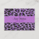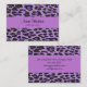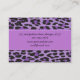 Cartões de visitas elegantes, na moda e sofisticados com padrão-leopardo em cor roxa. Design moderno e moderno, perfeito para amantes de impressão animal.