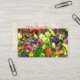 Este cartão de visita floral que anuncia um compro florista é coberto por massas de flores em todas as cores do arco-íris. Desfrute do padrão floral amarelo, laranja, rosa, vermelho, azul, roxo e branco sobre um fundo de folhas verdes na frente e atrás. Ao ver isso, lembra-se uma pintura impressionista francesa. Todo o texto está no verso e pode ser personalizado para ajustado da sua própria empresa pessoal.