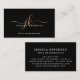 Cartão De Visita Iniciais de Script Monograma Dourado Preto Elegant