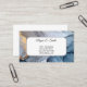 This business card is shown in a blue and grey colors ink swirl art print.
