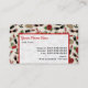 Um cartão de visita de moda com o tema de um glamour vintage com um padrão temático. Design consiste em cerejas, rosas vermelhas, óculos de sol para gatos vermelhos e pretos, uma bolsa de impressão leopardo, âncoras vermelhas e pretas e batom vermelho. Design tem um esquema de cores vermelho e preto.