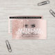 Instruções Após Cuidados Lash Rosa Dourado Drips Spark Cartão de visita. O Fabuloso Artista Makeup Eyelash Lashes design com texto de caligrafia de script, brilhos de ouro rosa e Cartão de visita de fundo elegante, com ilustração dos olhos das mulheres. Personalize esta cartão de visita feminina, adicionando seu próprio logotipo, seu nome, sua profissão, escolha sua própria fonte de script, altere ou exclua qualquer elemento e você terá uma ferramenta incrível para atrair clientes e expandir sua empresa.