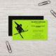 Promova seu negócio de aulas de esqui ou outros serviços para esquiadores com esses cartões de visitas de surra ocular em verde limão e preto. Eles apresentam uma ilustração no estilo da silhueta de um esquiador fazendo um truque de esqui e são fáceis de personalizar com as informações de sua empresa e os detalhes de contato.