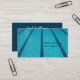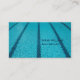 Estes cartões de visitas modernos de piscinas de natação são perfeitos para um instrutor ou treinador de natações. A fotografia apresenta uma piscina com faixas de natação e água azul bonito. Saia para as aulas de natação este verão.