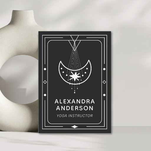 Cartão De Visita Instrutor Geométrico Celestial Crescent Moon Yoga