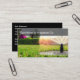 Cartões de visitas de irrigação por lanterna e sistema de pulverização projetados com um gráfico de um jardim bem cuidado e jardim de terra e um simples cartão de chamada editável que você pode personalizar on-line.
