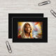 Um inspirador cartão de visita religioso cristão que apresenta Jesus sorrindo numa floresta celestial com belos raios de sol. Perfeito para igrejas, Bíblias, escolas cristãs ou livrarias religiosas.
