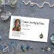 Capture a essência da elegância e do artesanato com nosso Cartão de visita de Joias Personalizadas, projetado para exibir sua arte e criações únicas. Este cartão é mais do que uma forma de compartilhar seus dados de contato — é um reflexo da sua paixão por fazer peças de um tipo que brilham com a individualidade. Com um design luxuoso e polido, a placa destaca a sua imagem, nome, título e informações de contato. Seu estilo sofisticado deixa uma impressão duradoura, espelhando o trabalho personalizado de alta qualidade que você oferece. Perfeito para compartilhar em artesanatos, butiques, ou com clientes potenciais, este cartão de visita garante seu nome brilha tão intensamente quanto suas joias. Faça sua primeira impressão tão deslumbrante quanto as peças que você cria. Todo texto, foto e imagem são personalizáveis para atender à sua marca. por 1bizarra escolha, todos os direitos reservados.