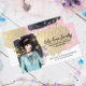© Socialite Designs Inc. e LICENCIADOS. Eleve sua marca com este elegante Cartão de Visita de Negócios de Joias e Designer de Contas Feitas à Mão da Socialite Designs. Com uma ilustração elegante de uma garota adornada com joias cintilantes, este cartão personalizável é perfeito para artesãos que se especializam em joias artesanais, contas ou reutilizadas. Os tons de dourado suave e rosa criam uma estética quente e convidativa que reflete o cuidado e a criatividade por trás da sua arte. Seja você exibindo seu trabalho em mercados, boutiques ou online, este design ajuda a causar uma primeira impressão memorável com um toque de charme e sofisticação.